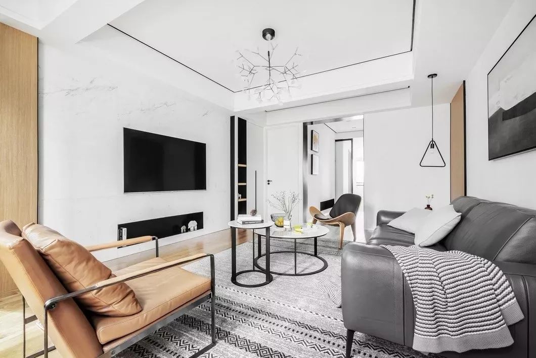客厅仍然以白色为主色调,通过原木色的融入以及灰色的过渡,呈现简洁明快的生活气息。