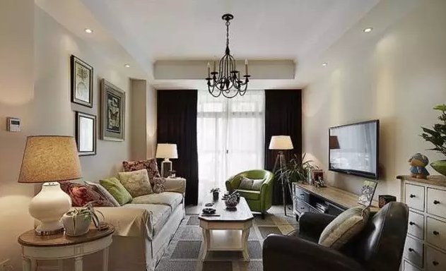 对于一些长宽度都比较小的客厅,需要客餐厅挤在一起的时候,那么沙发就不宜太宽,而双人沙发的话就比较合适了;