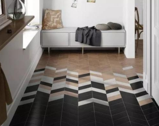 菱形铺法是在传统的方格瓷砖上方法稍做变化,这款造型比较适合用于客厅中的茶几位置,或者厨房、卫生间等等,用菱形瓷砖都可以做出不错的造型效果。