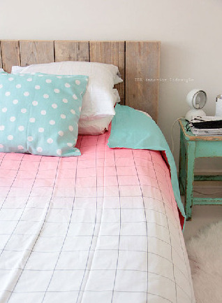 一眼就能辨别的软妹子卧房,波点枕+渐变床单,搭配一盏可闭合的Q萌小台灯,要比放一盏有着大型灯罩的艳丽灯具来得舒服。